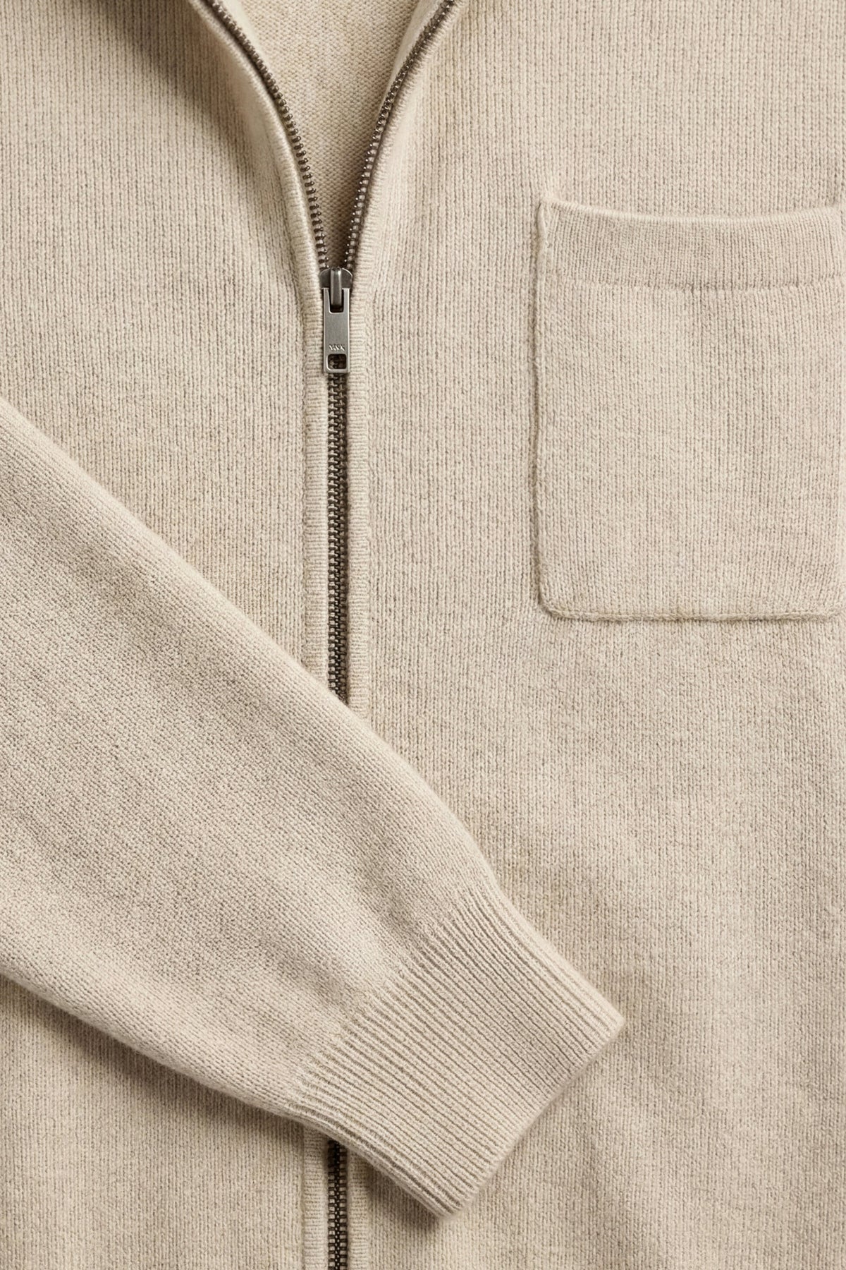 Details: Hooded full-zip sweater with single upper-right chest pocket, fine ribbed cuffs and hem, straight-leg trousers with side pockets and tonal drawstring waistband, smooth matte knit finish throughout