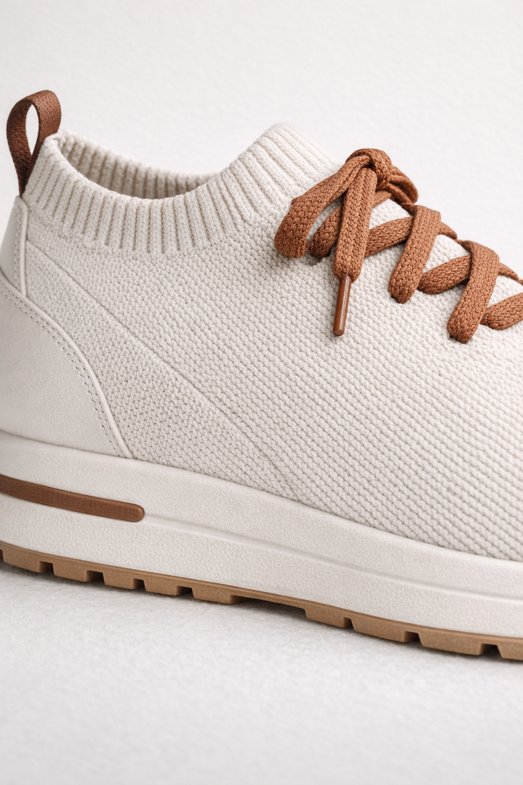 Details: Ribbed collar and tongue, seamless construction, minimal stitching