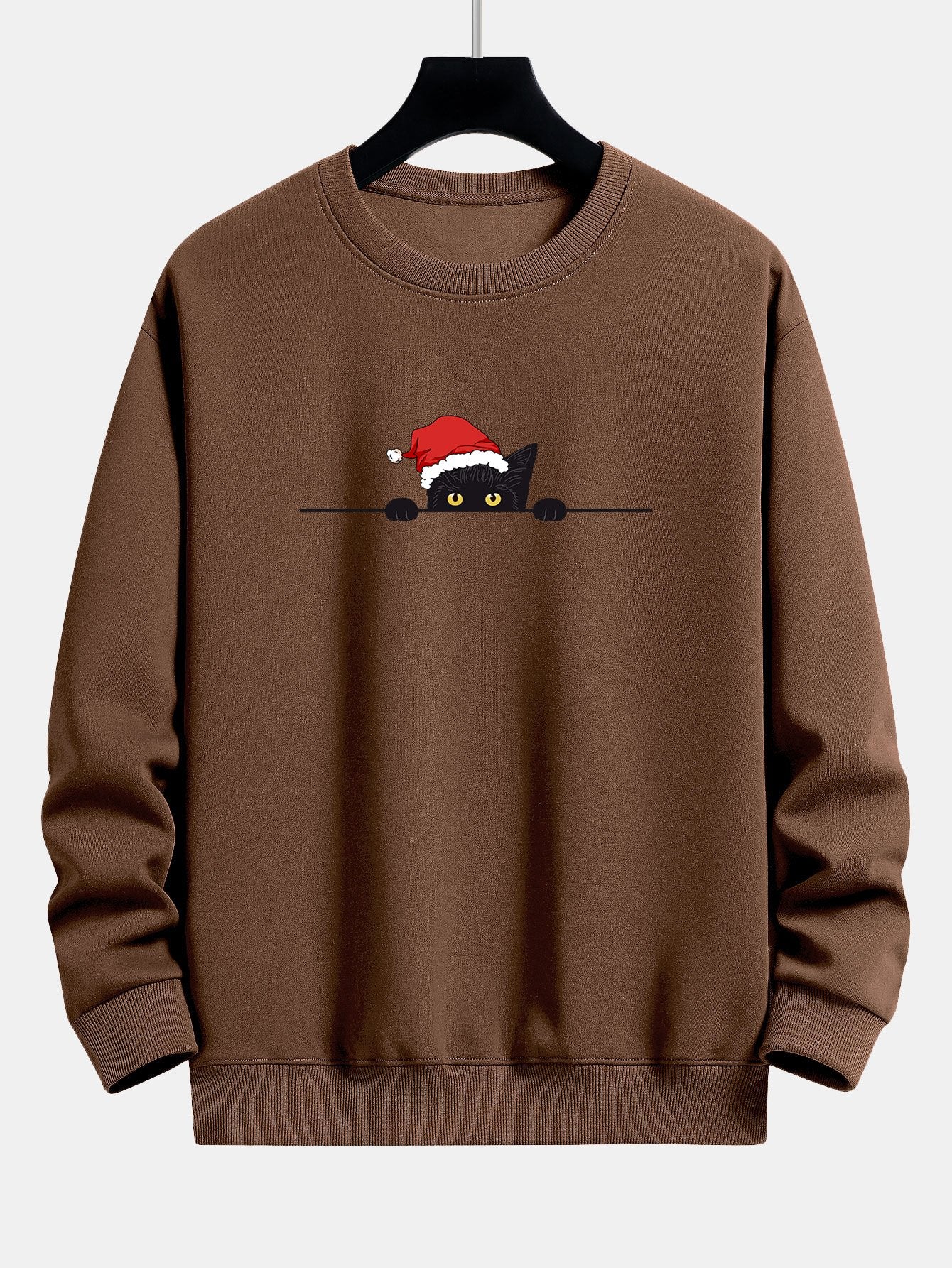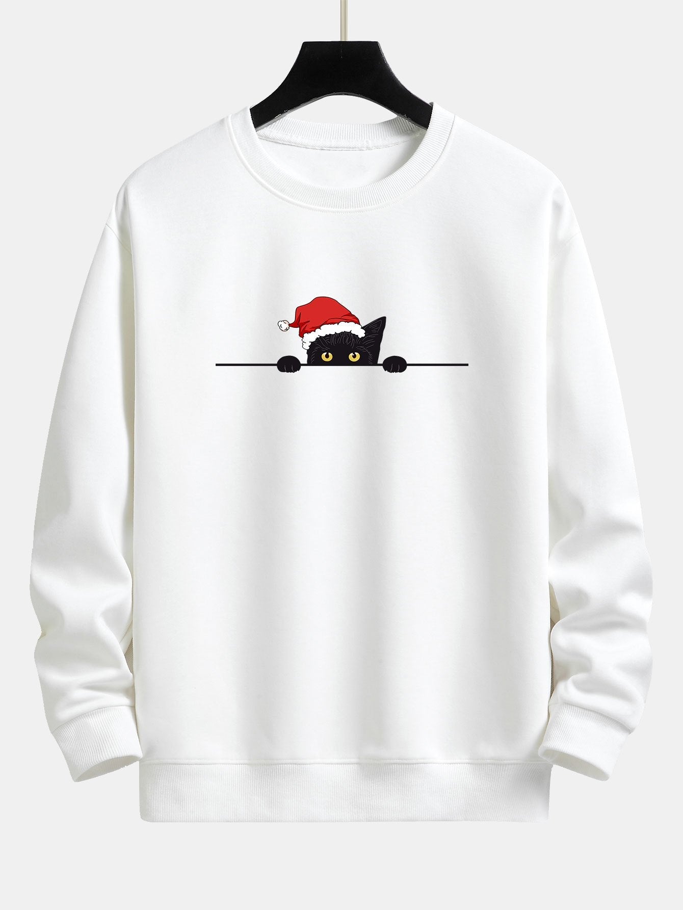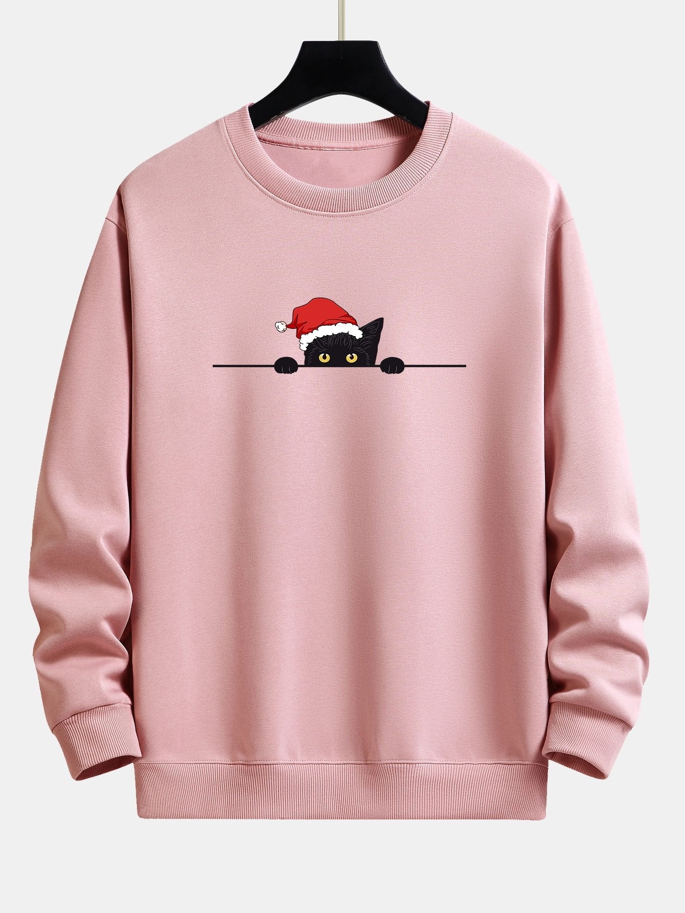 Kerst Zwarte Kat Print Relax Fit Sweatshirt