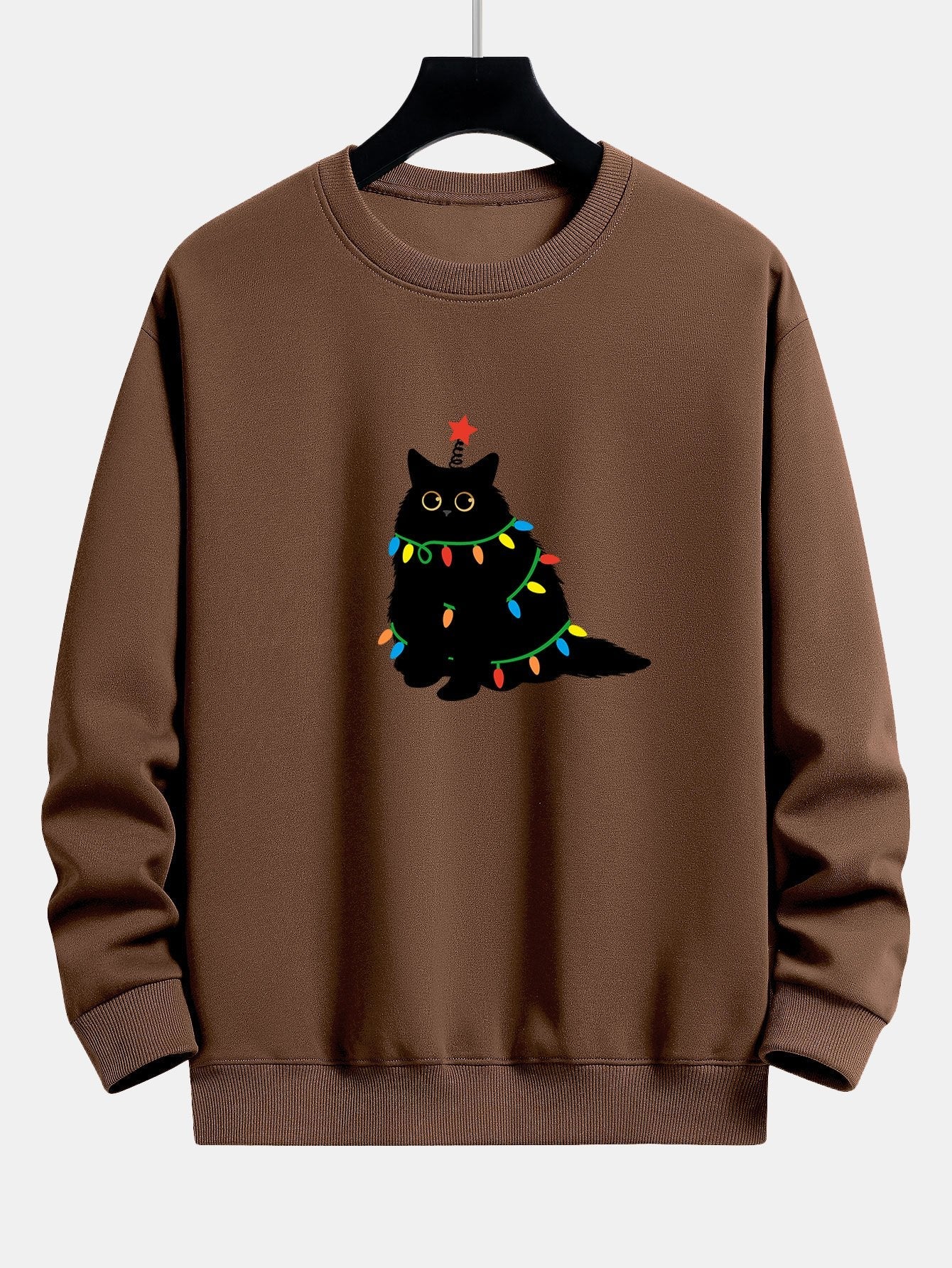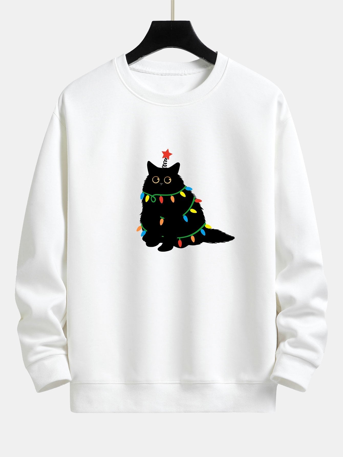 Kleurrijke Licht Zwarte Kat Print Relax Fit Sweatshirt