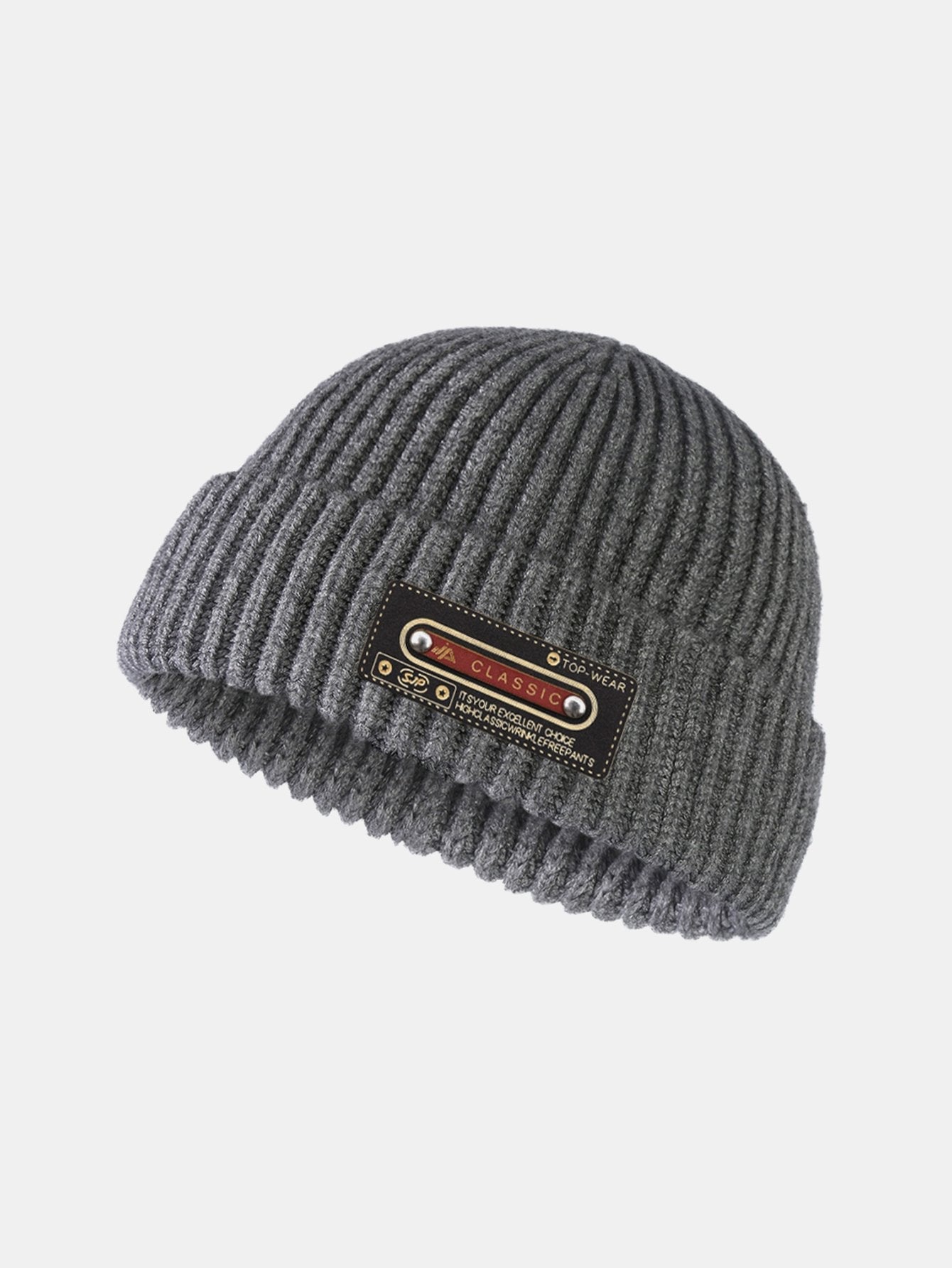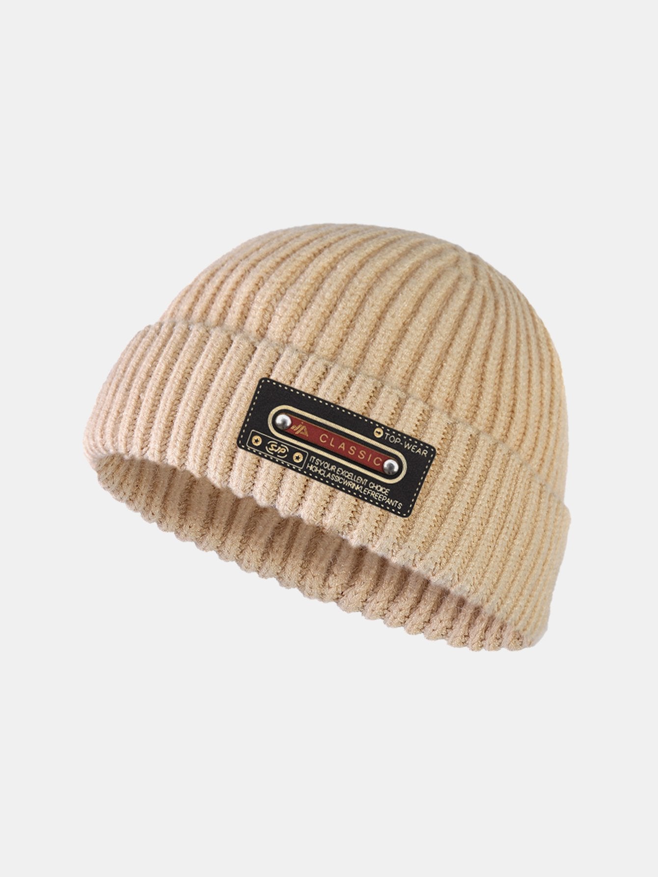 Solid Kleur Slogan Patch Gebreide Beanie Hoed